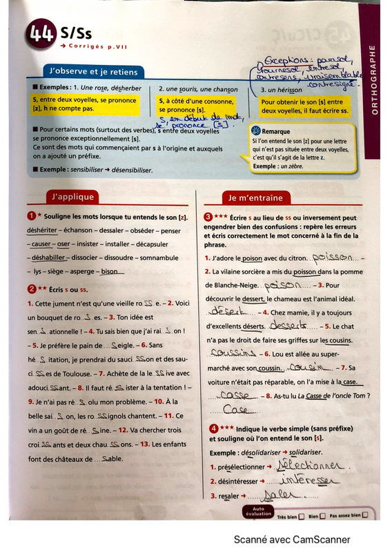1) Corriger la fiche "s,ss".