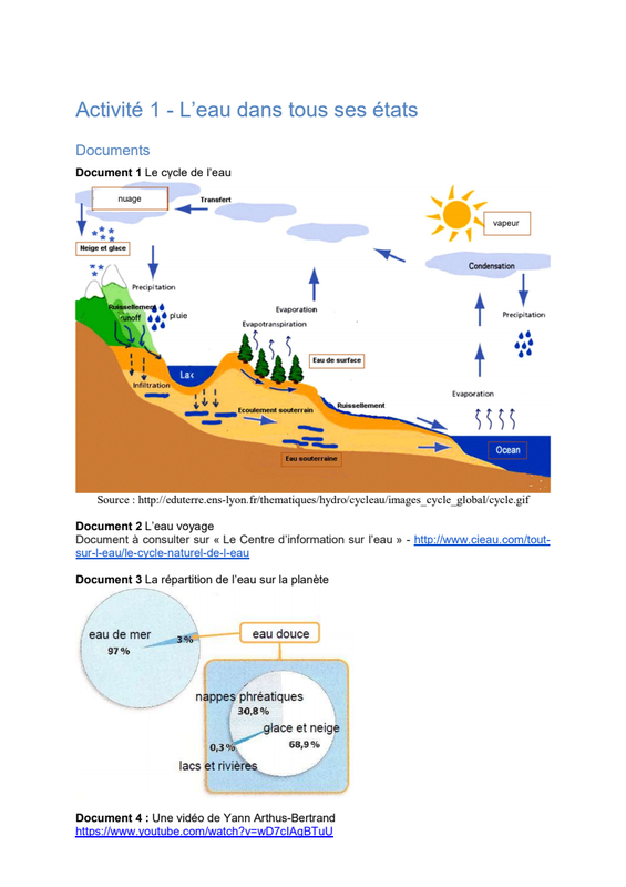 L'activité 1 sur les changements d'état de l'eau est à faire pour le vendredi 19 Juin sans me la renvoyer.