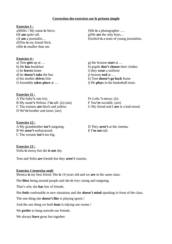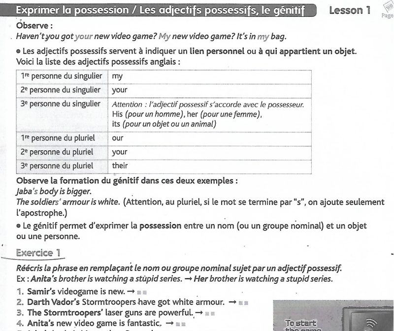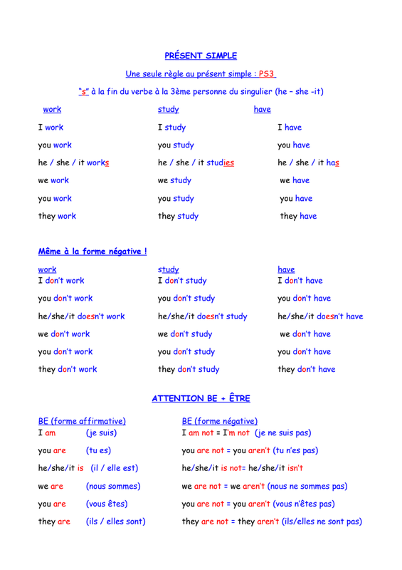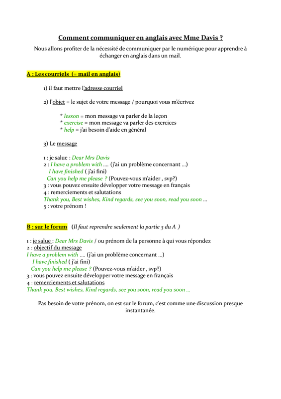 Les élèves devront lire la leçon, l'imprimer ou la recopier dans le cahier, faire les exercices dans leur cahier de brouillon d'anglais et corriger leurs exercices avec la fiche correction.