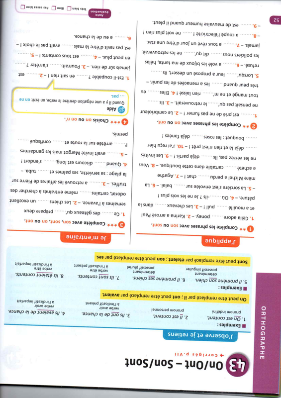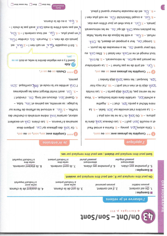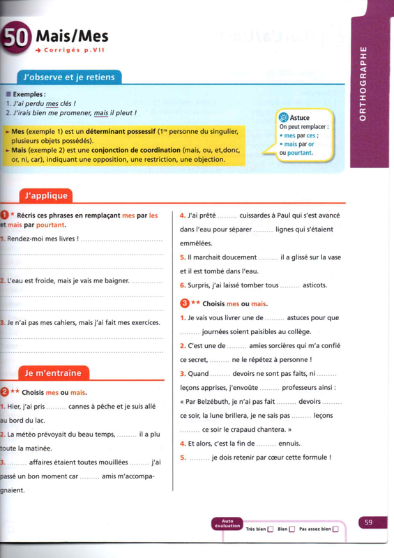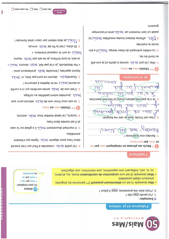 2) Corriger, de façon autonome sur votre feuille (et non simplement en imprimant ma correction), les fiches concernant les homophones mais/mes et on/ont, son/sont.