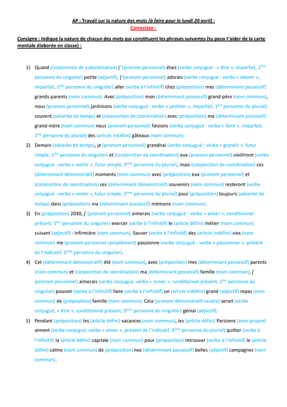 1) Corriger, de façon autonome sur votre feuille (et non simplement en imprimant ma correction), l'exercice concernant les phrases à décortiquer.